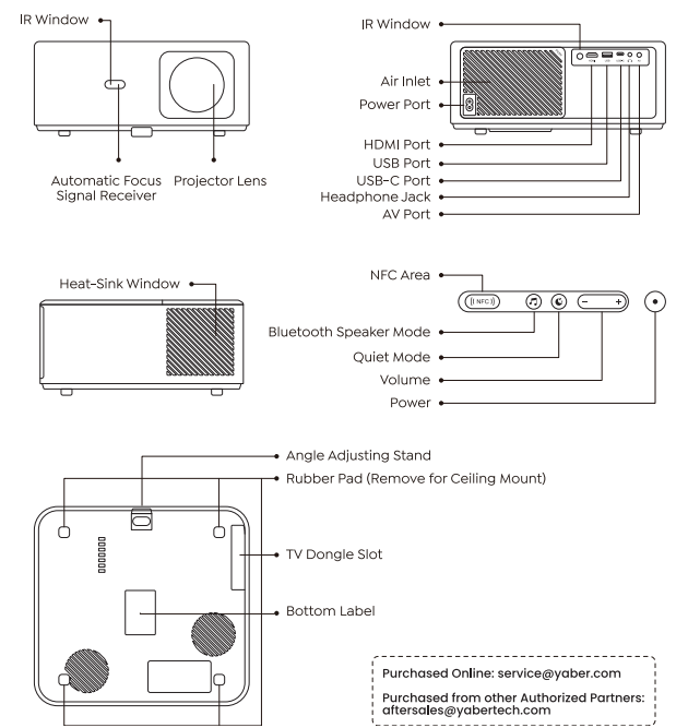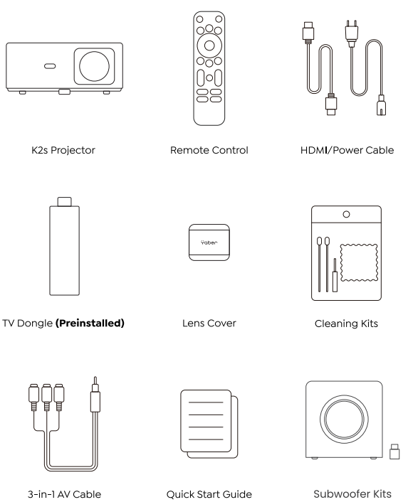 Rest assured, our service team will offer the solution to youwithinh 24 hours. Your satisfaction is our top priority. If you encounter any issues, we sincerely hope you will allow us to make things right. We also encourage you to thoroughly explore the contents of this manual first. We wish you an outstanding experience with the K2s projector. Yaber Consumer Service Team