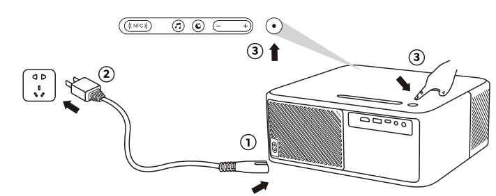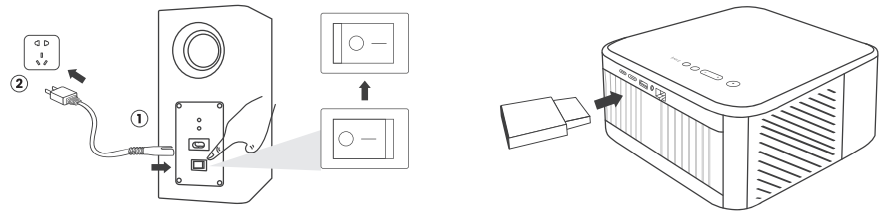 1. Connect the projector and subwoofer to the power supply and turn on the switch.Yaber-K2s-PRO-WiFi-6-Bluetooth-Projector-fig-4