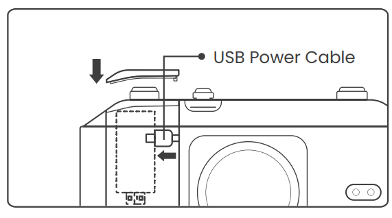 - Connect the USB power cable and restore the cover of the Dongle compartment.