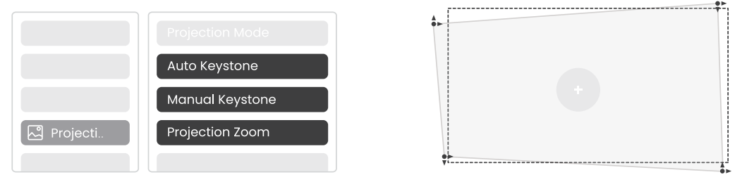 If further screen adjustments are needed, please select [Manual Keystone] in [Projection Mode] and adjust the screen by dragging the arrows.