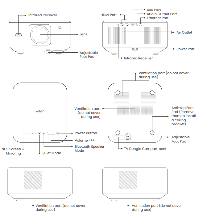 Rest assured, our service team will offer the solution to youwithinh 24 hours. Your satisfaction is our top priority. If you encounter any issues, we sincerely hope you will allow us to make things right. We also encourage you to thoroughly explore the contents of this manual first. We wish you an outstanding experience with the projector. Yaber Consumer Service Team