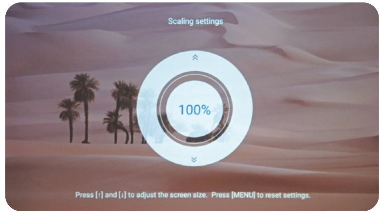 - Press Down button Vto Zoom out (100&-70%) and UpbuttonAtoZoom in (70%-100%)