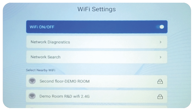 - Go to Homepage> Settings – WI Fl Setting