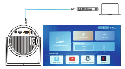 Once the HDMI is connected to the projector, you will need to select the specific signal source as input. After connecting, the content played on the source will be streamed on the projector.