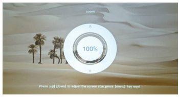 3. Press the Down button V to Zoom out (100% – 70%) and Up button A to Zoom in (70% – 100%).
