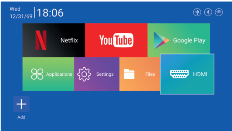 Once the HDMI is connected to the projector, you will need to select the specific signal source as input. After connecting, the content played on the source will be streamed on the projector.