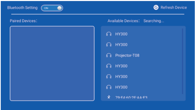 - Turn the Bluetooth Connection On and search for nearby Bluetooth devices.